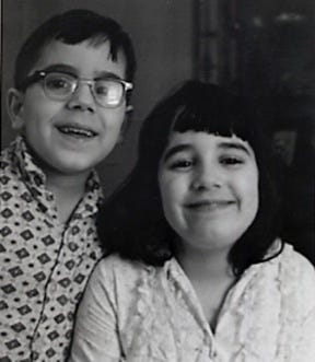 The photo above is the only one I’ve found of my sister Joanie and I. I’m six, she’s two years older. When it was taken, why it was taken, confounds me. Usually, all five of us would be posed together, oldest-to-youngest. This picture’s a bit of a unicorn.